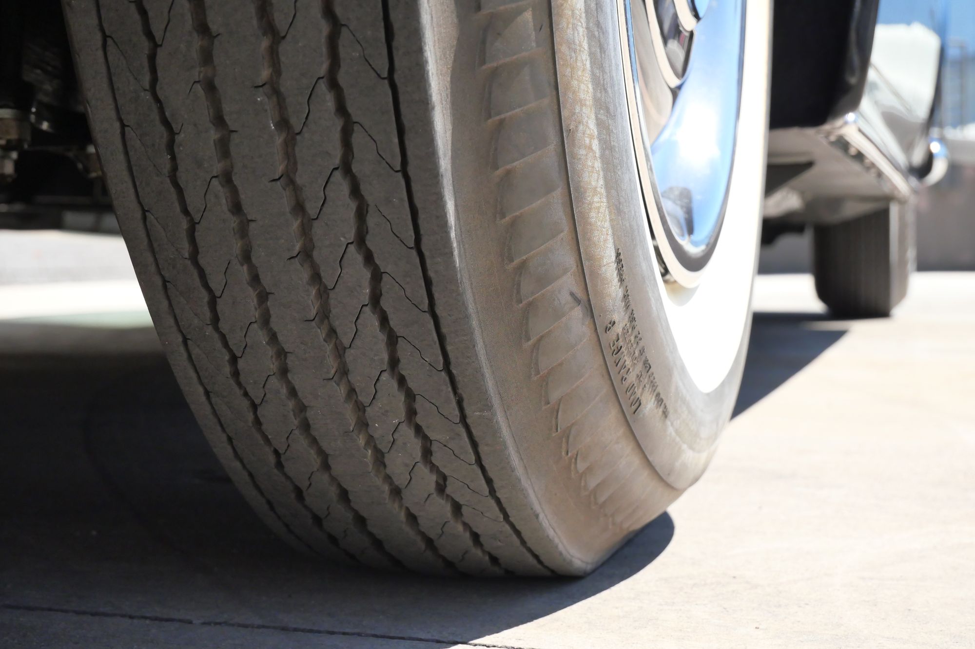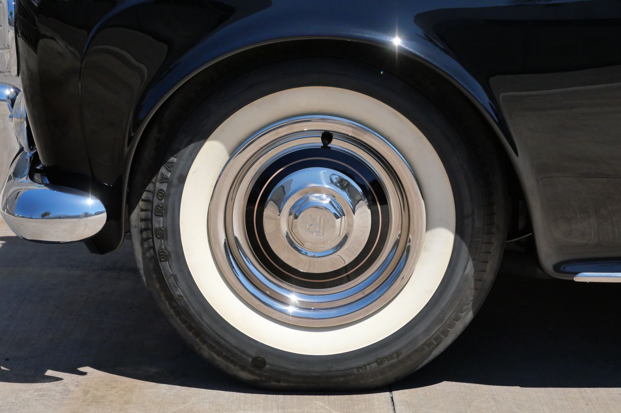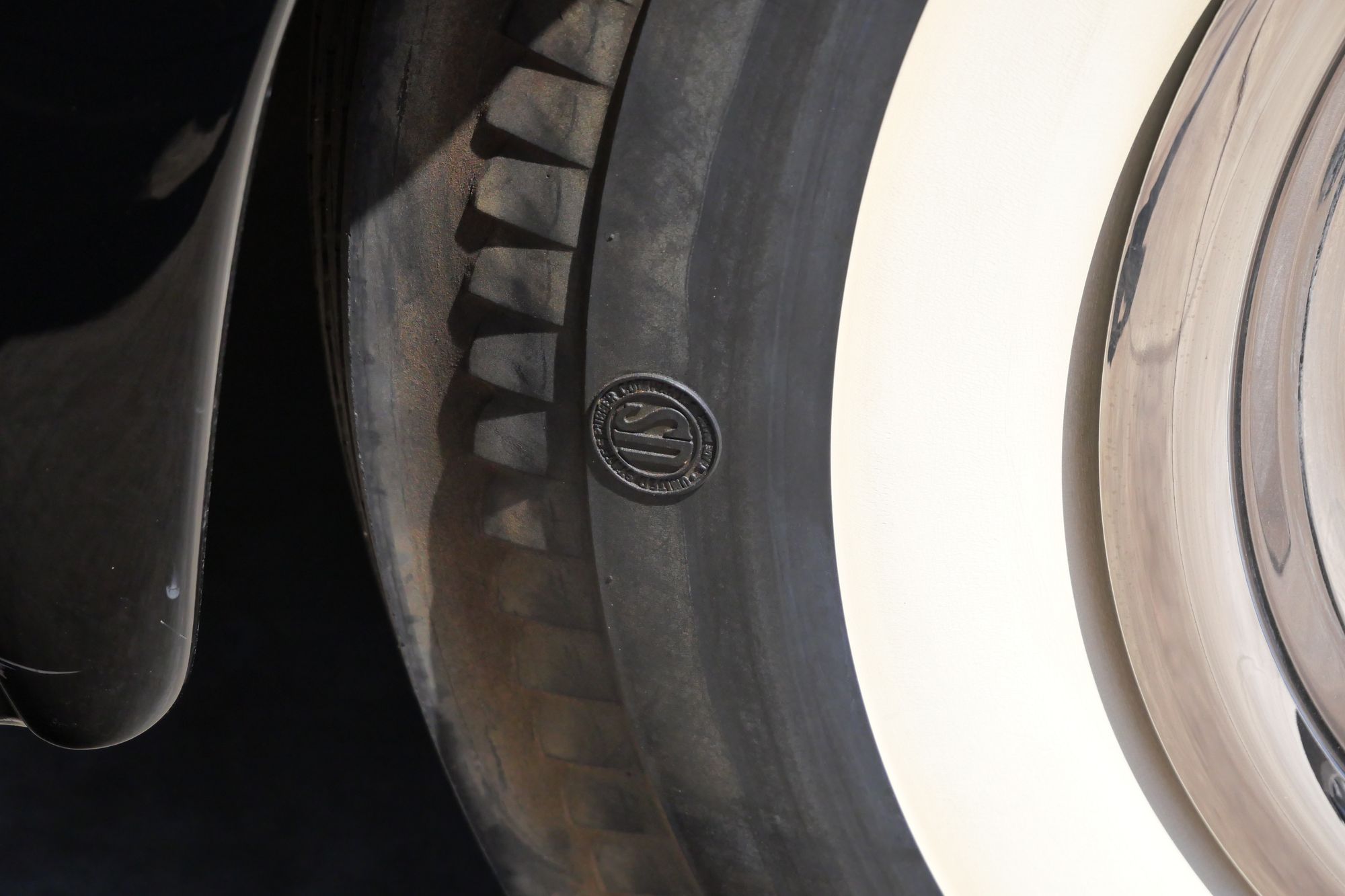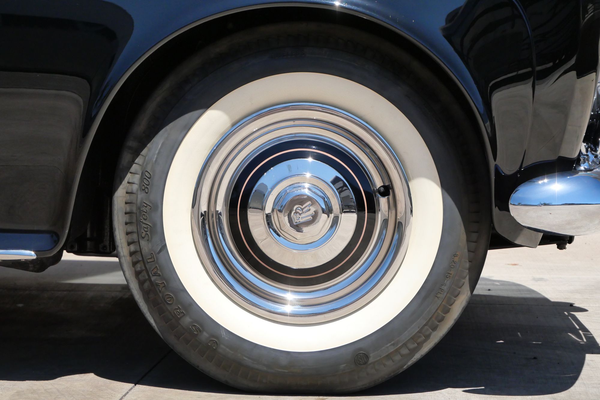 Steel 15” wheels wear bright covers with black and gold accent stripes as well as U.S. Royal Safety 800 whitewall tires. Independent front suspension is handled by unequal-length control arms with coil springs, hydraulic dampers, and an anti-roll bar while a live axle with gaiter-clad half-elliptic leaf springs, a single radius rod, and electrically controlled shock dampers is fitted at the rear. Power-assisted steering and drum brakes came standard.