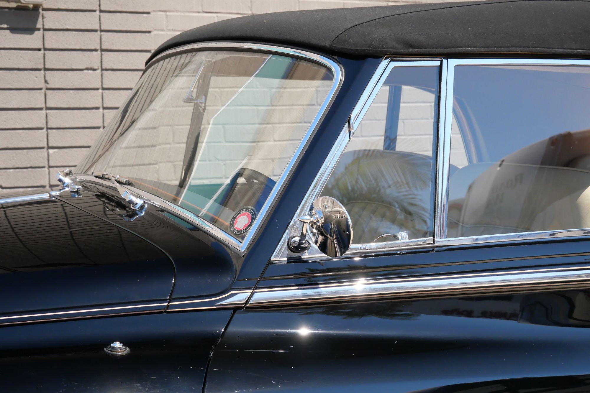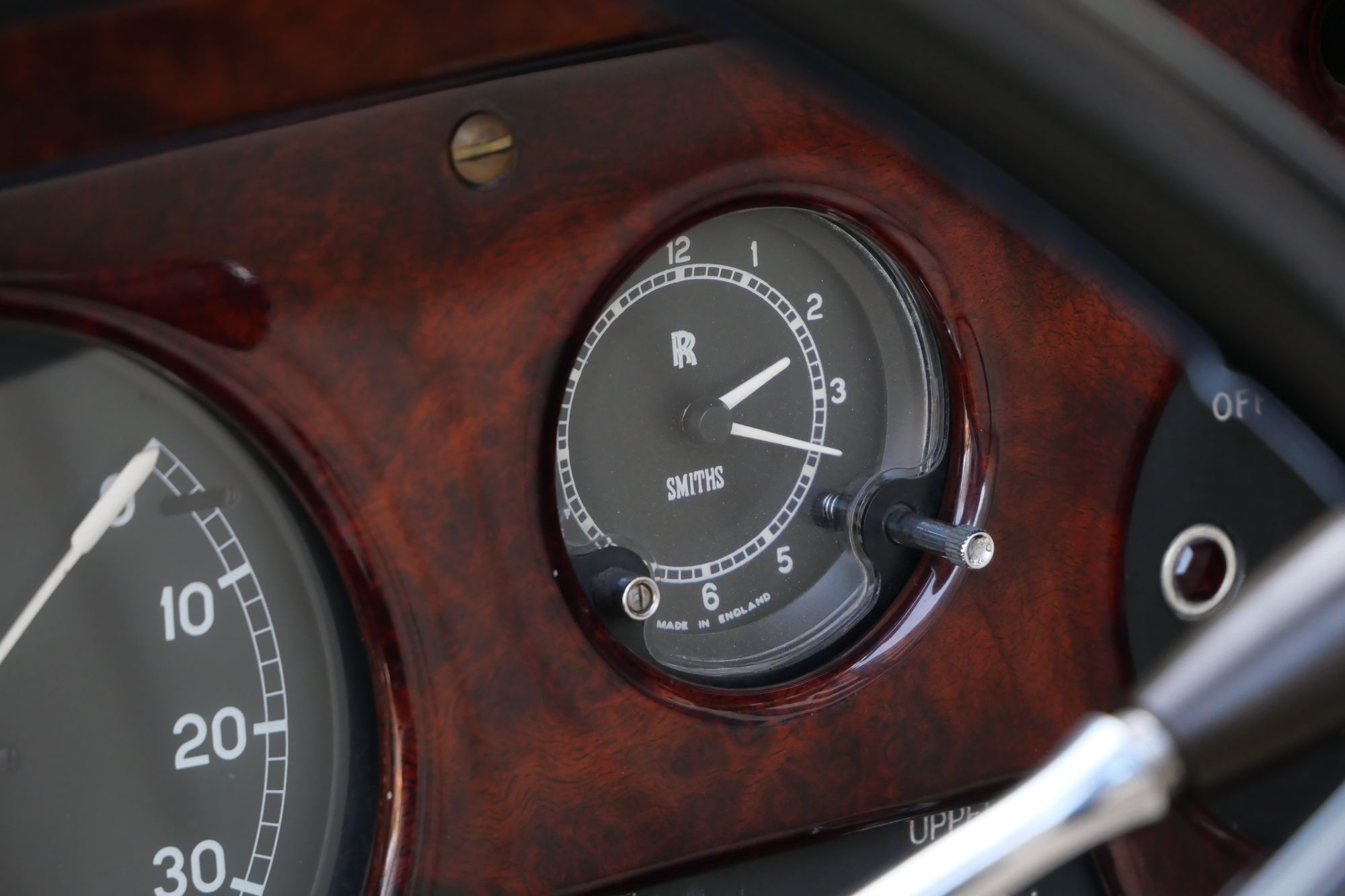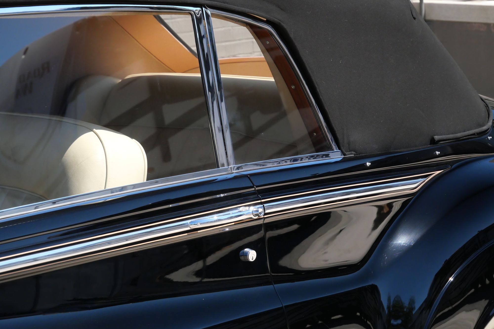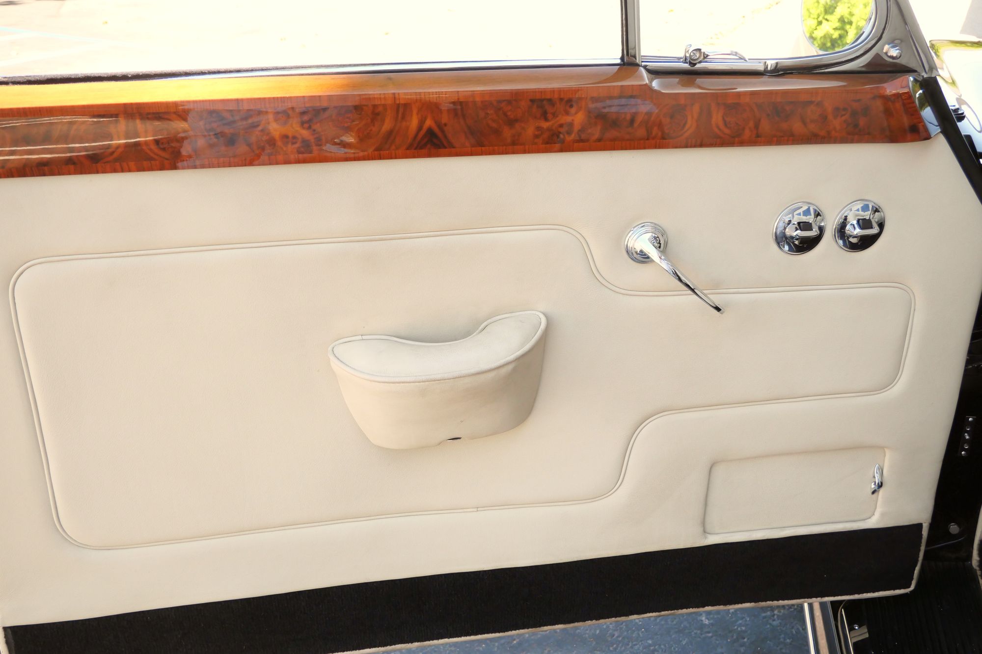 This example is finished in black with a power-operated black convertible top and was repainted during the aforementioned refurbishment. Features include a cream boot cover, Lucas driving lamps, a polished stainless-steel grille, a Spirit of Ecstasy ornament, bright rocker-panel moldings, and chrome bumpers with overriders. Paint meter readings are viewable in the gallery.
