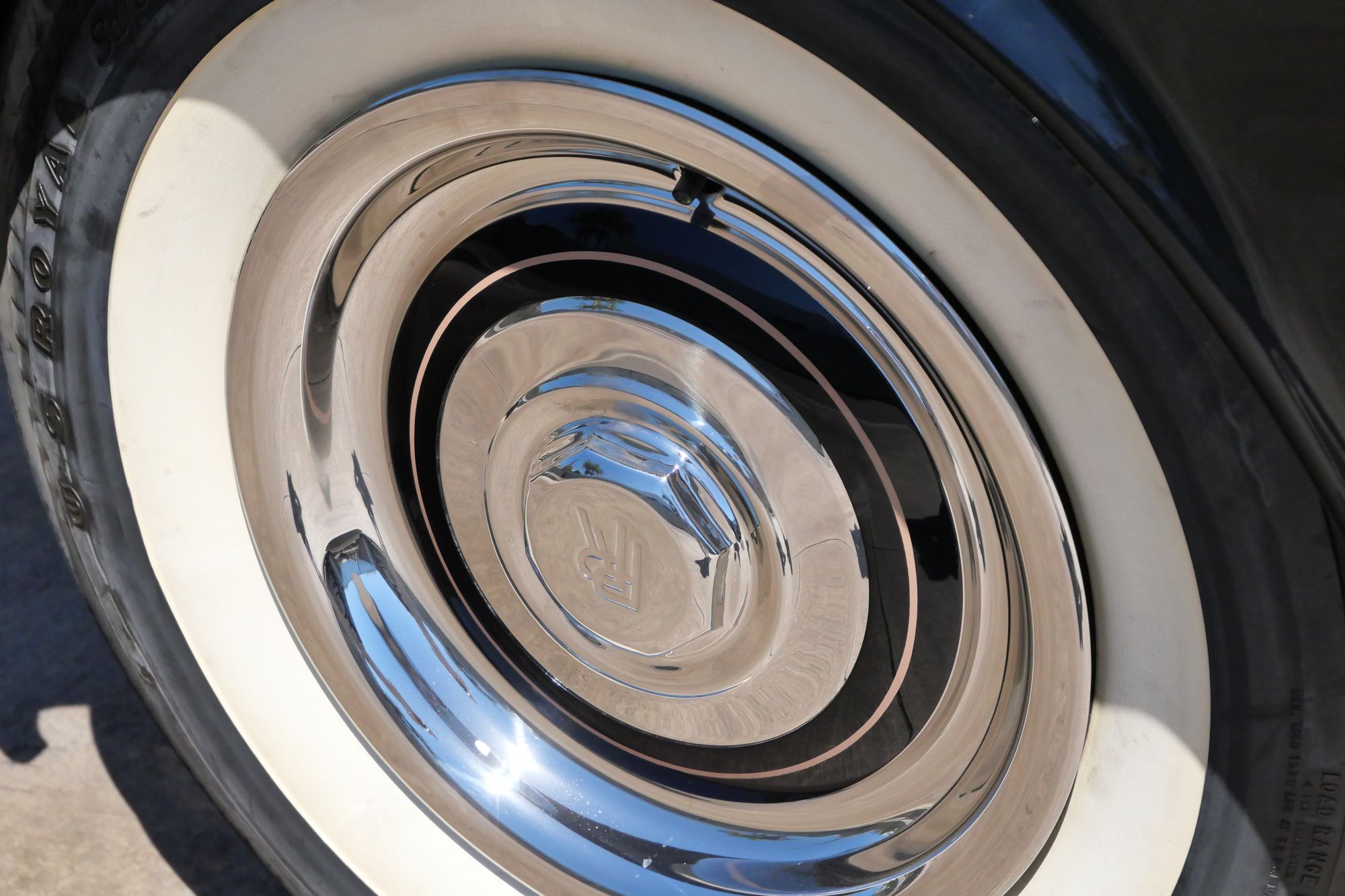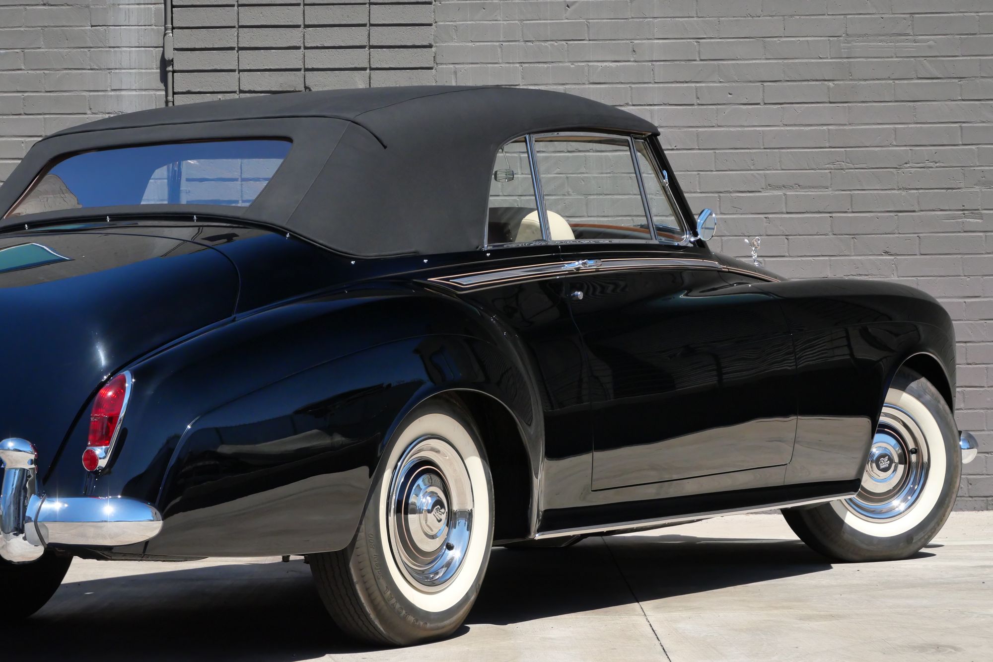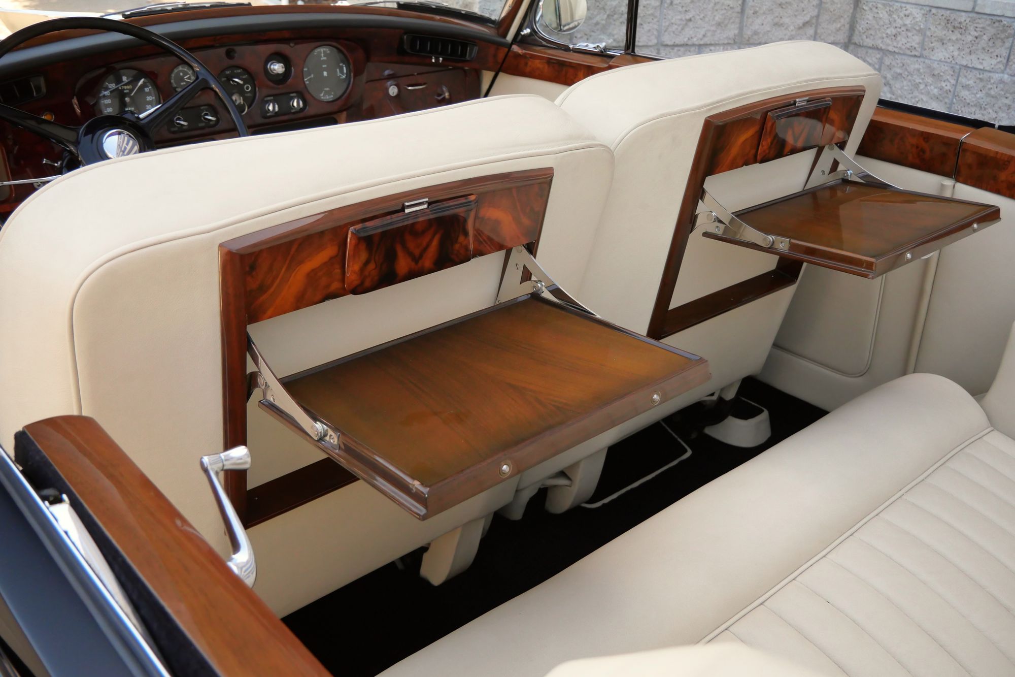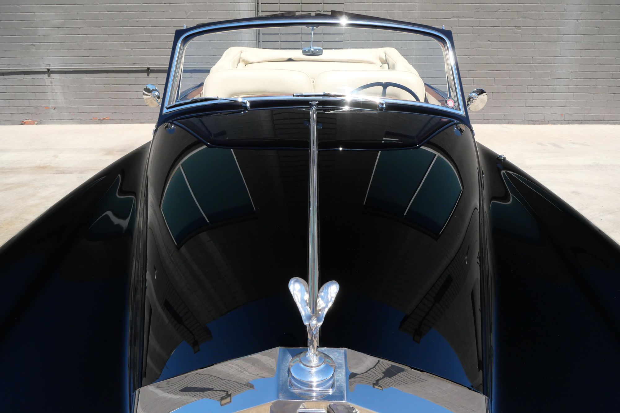 This example is finished in black with a power-operated black convertible top and was repainted during the aforementioned refurbishment. Features include a cream boot cover, Lucas driving lamps, a polished stainless-steel grille, a Spirit of Ecstasy ornament, bright rocker-panel moldings, and chrome bumpers with overriders. Paint meter readings are viewable in the gallery.