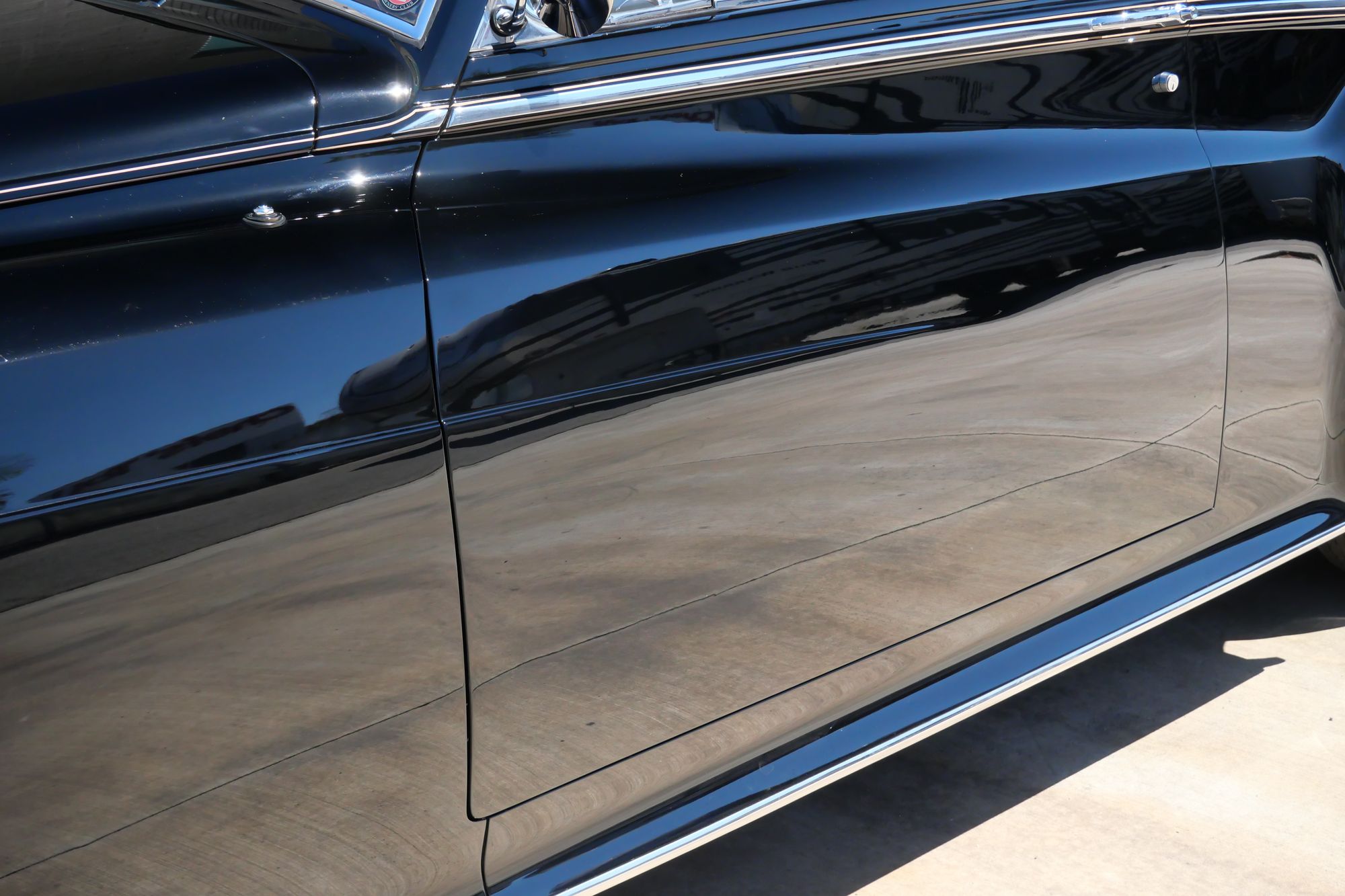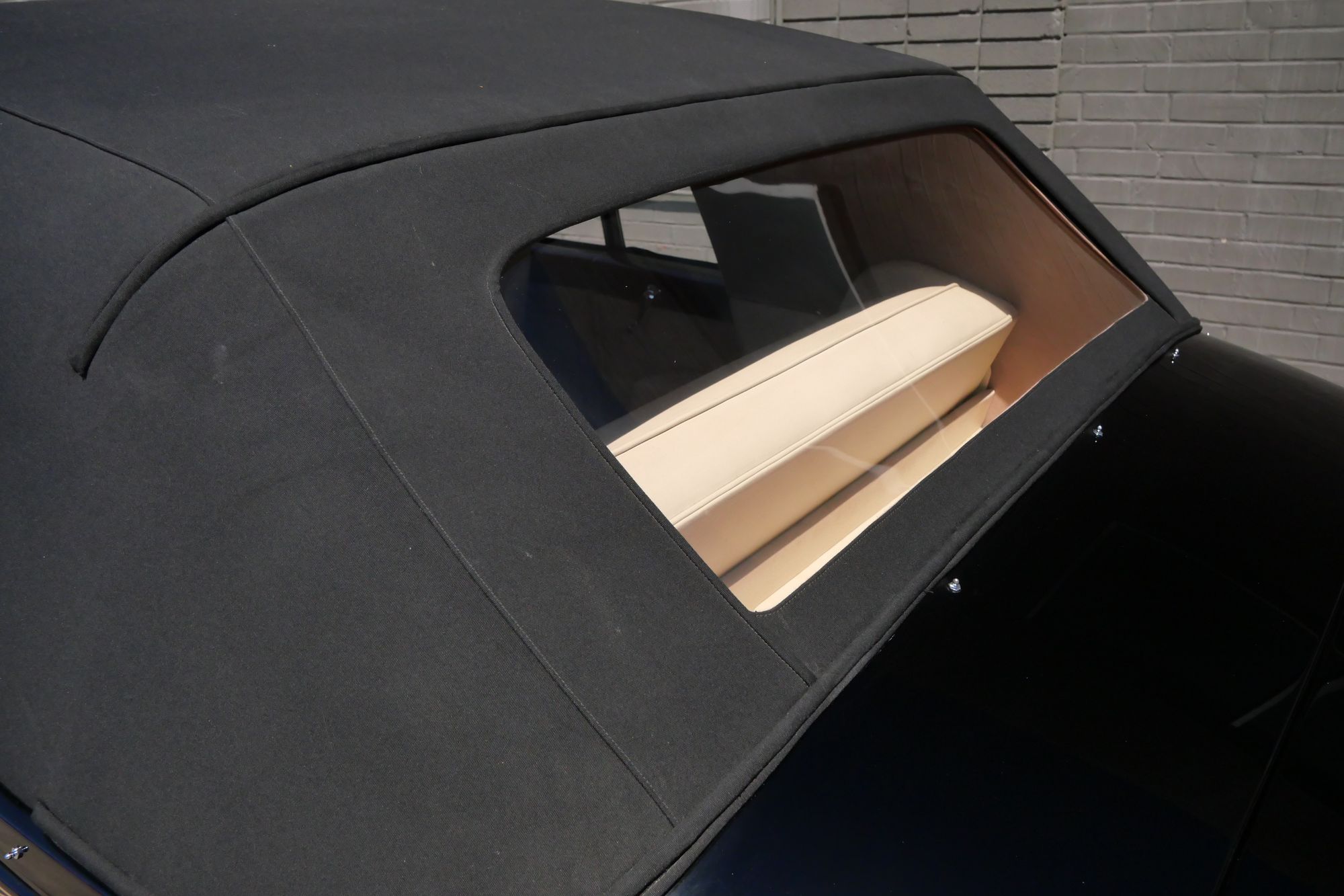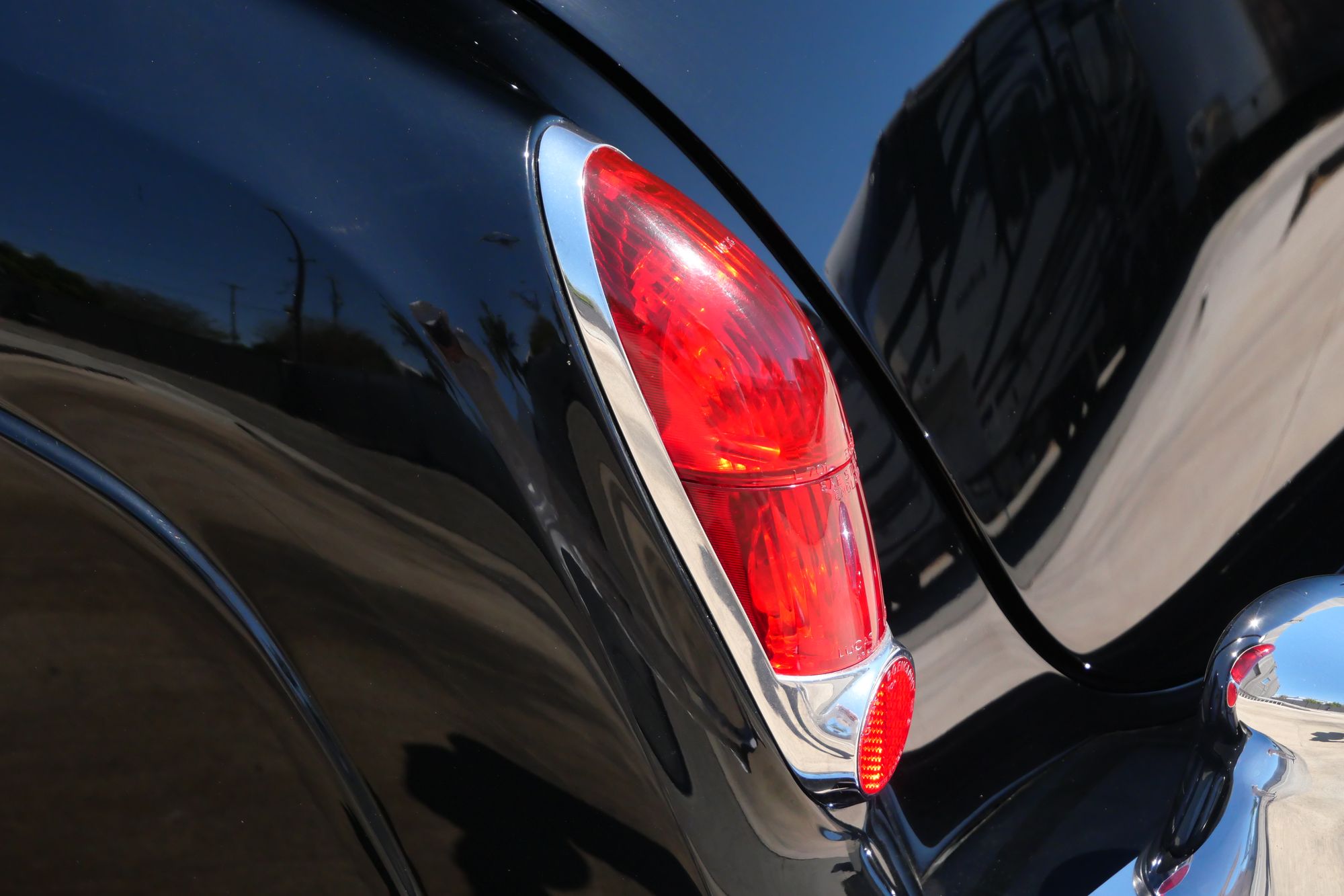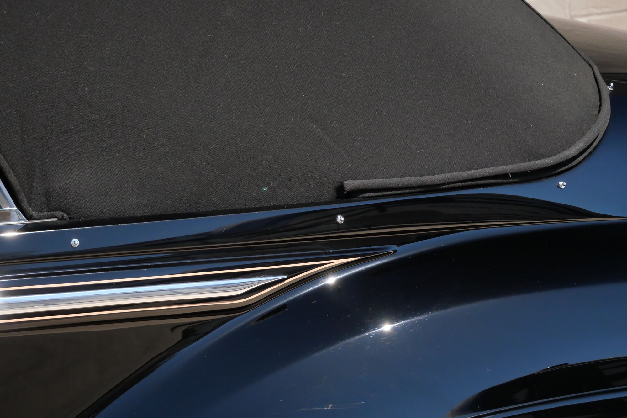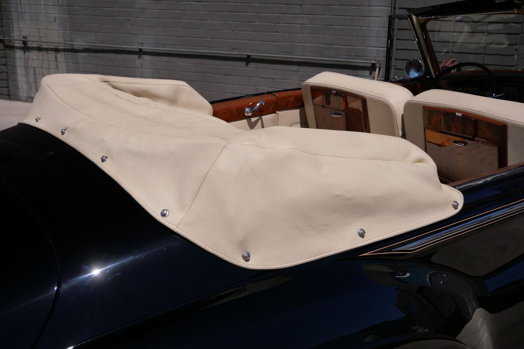 This example is finished in black with a power-operated black convertible top and was repainted during the aforementioned refurbishment. Features include a cream boot cover, Lucas driving lamps, a polished stainless-steel grille, a Spirit of Ecstasy ornament, bright rocker-panel moldings, and chrome bumpers with overriders. Paint meter readings are viewable in the gallery.