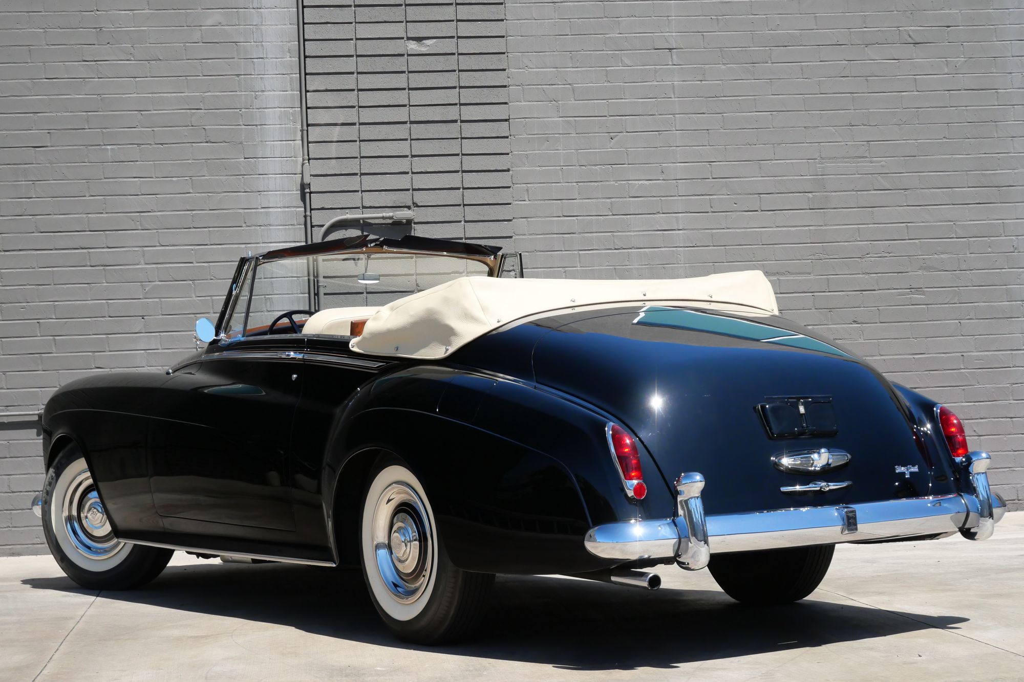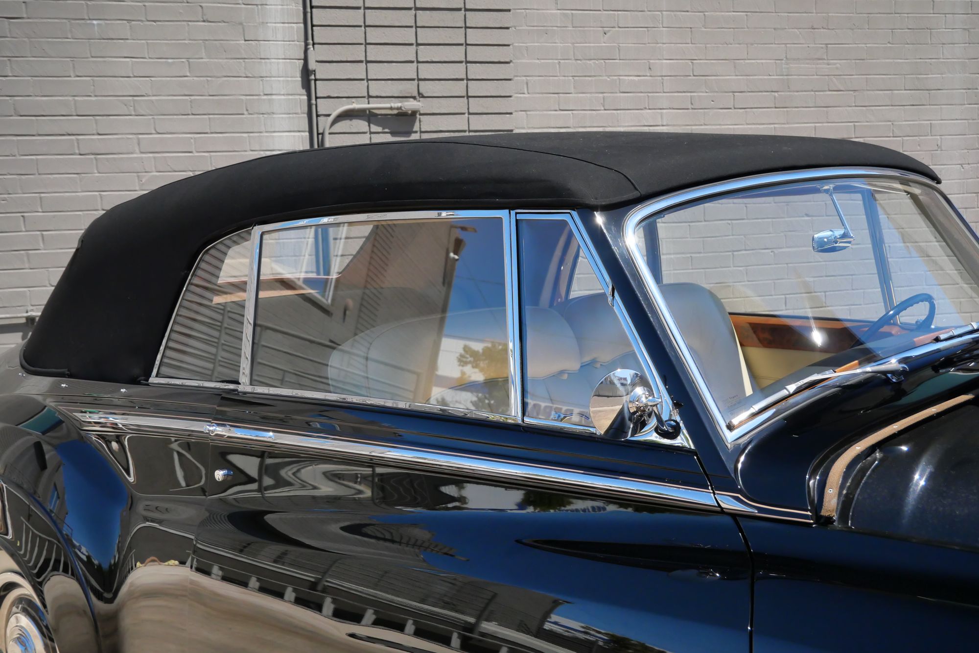 This 1963 Rolls-Royce is one of a limited number of purpose-built Silver Cloud III convertible coupés crafted by the Rolls-Royce coachbuilding shop H.J. Mulliner & Co, and it was converted to left-hand drive during a prior refurbishment. Chassis SCX361 was given a mechanical refresh in 2023 involving rebuilding its 6.2-liter V8 and four-speed automatic transmission. Finished in black with a power-operated black convertible top, the car features 15″ wheels with covers, a polished stainless-steel grille, a Spirit of Ecstasy hood ornament, and Lucas driving lights. The cabin is trimmed in cream leather with burl wood accents and amenities include air conditioning, power windows, rear-seat tray tables, and a Blaupunkt push-button AM/FM radio. This Silver Cloud III Adaptation is now offered with a boot cover, records and photos from the 2023 work, an owner’s manual, and a clean California title.